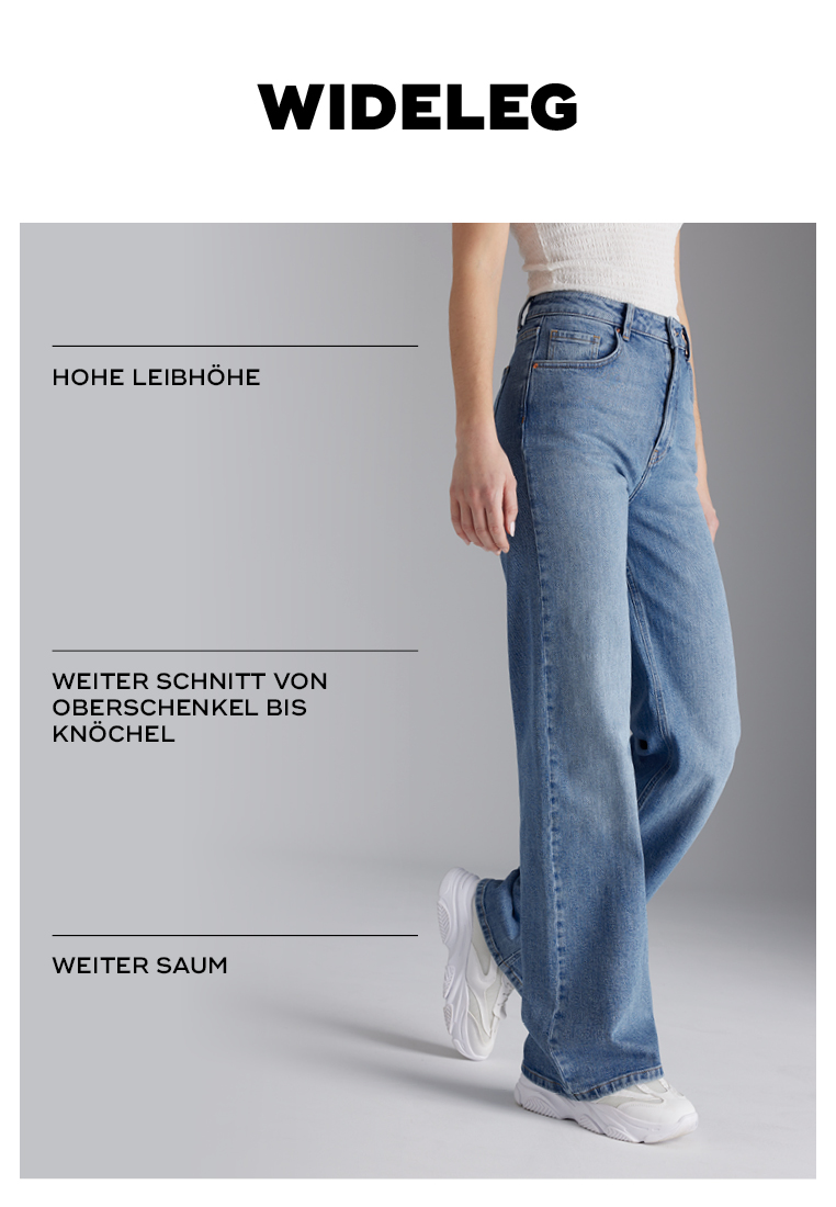 Viele Looks werden in der Fashion-Branche immer wieder neu aufgelegt. So erleben auch die Wide-Leg-Jeans für Damen ihr Revival aus den 90er-Jahren und sind daher ein Muss in unserem aktuellen Jeans-Guide. Als angesagter Trend überzeugen sie durch ihre weite Passform, die an Lässigkeit und Komfort kaum zu überbieten ist. Was der Name schon erahnen lässt: Der Schnitt einer Wide-Leg-Jeans für Frauen zeichnet sich durch seinen sehr weiten Look aus. Typisch bei den Jeans für Damen im Wide-Leg-Design sind die angeführten Attribute: