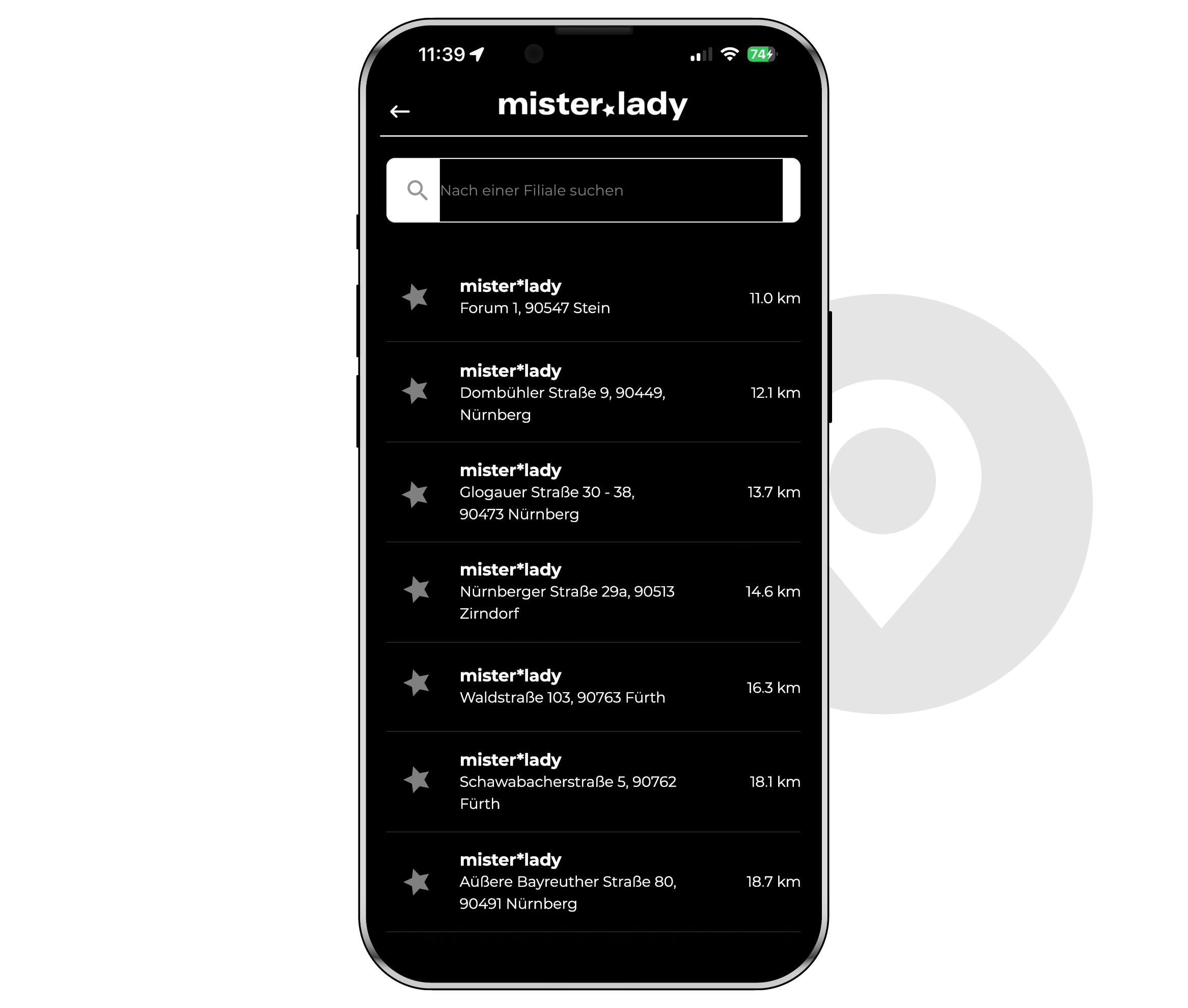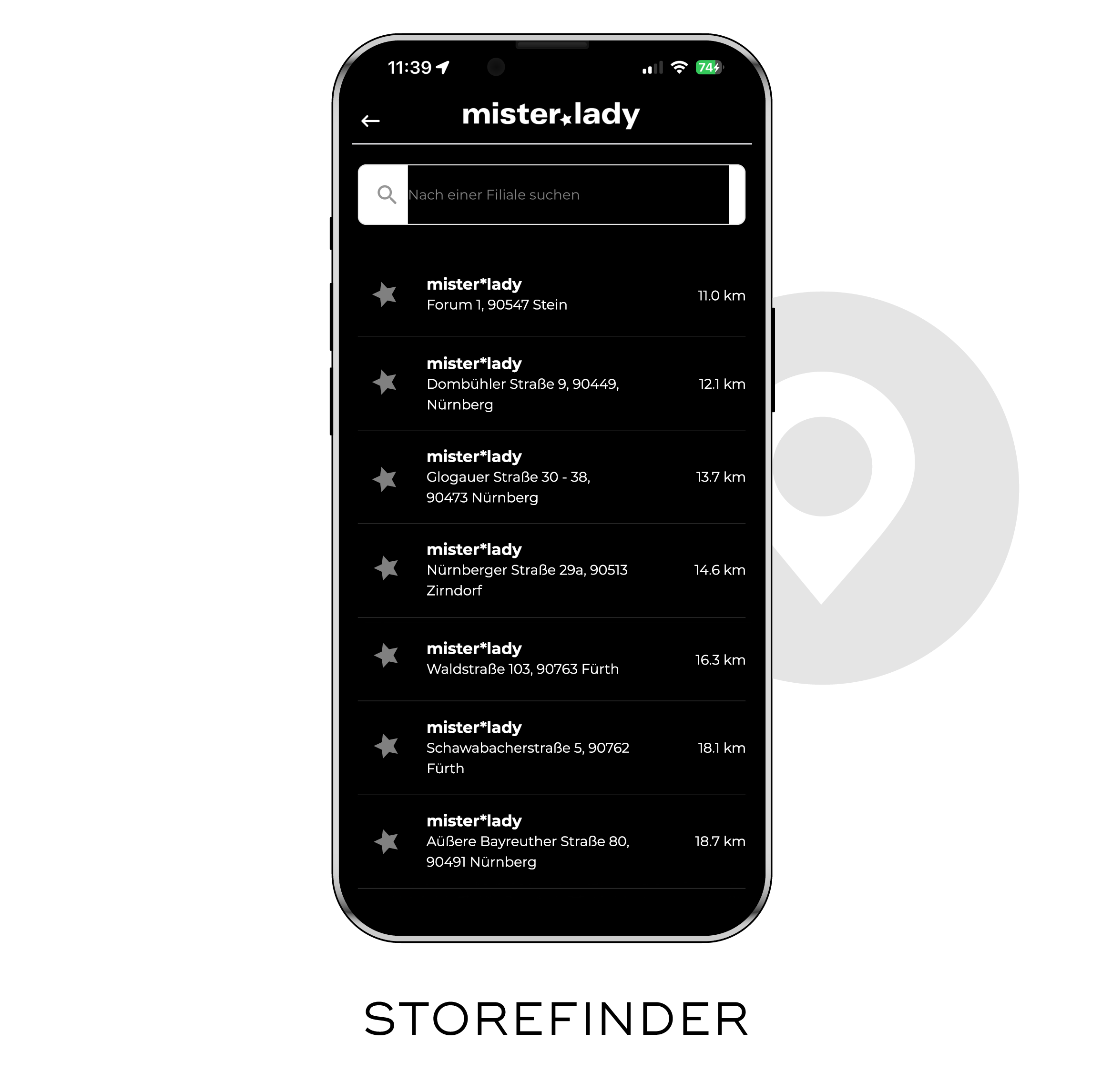- mister*lady-Store finden: Nutze den Storefinder, um den mister*lady-Shop in deiner Nähe zu finden.