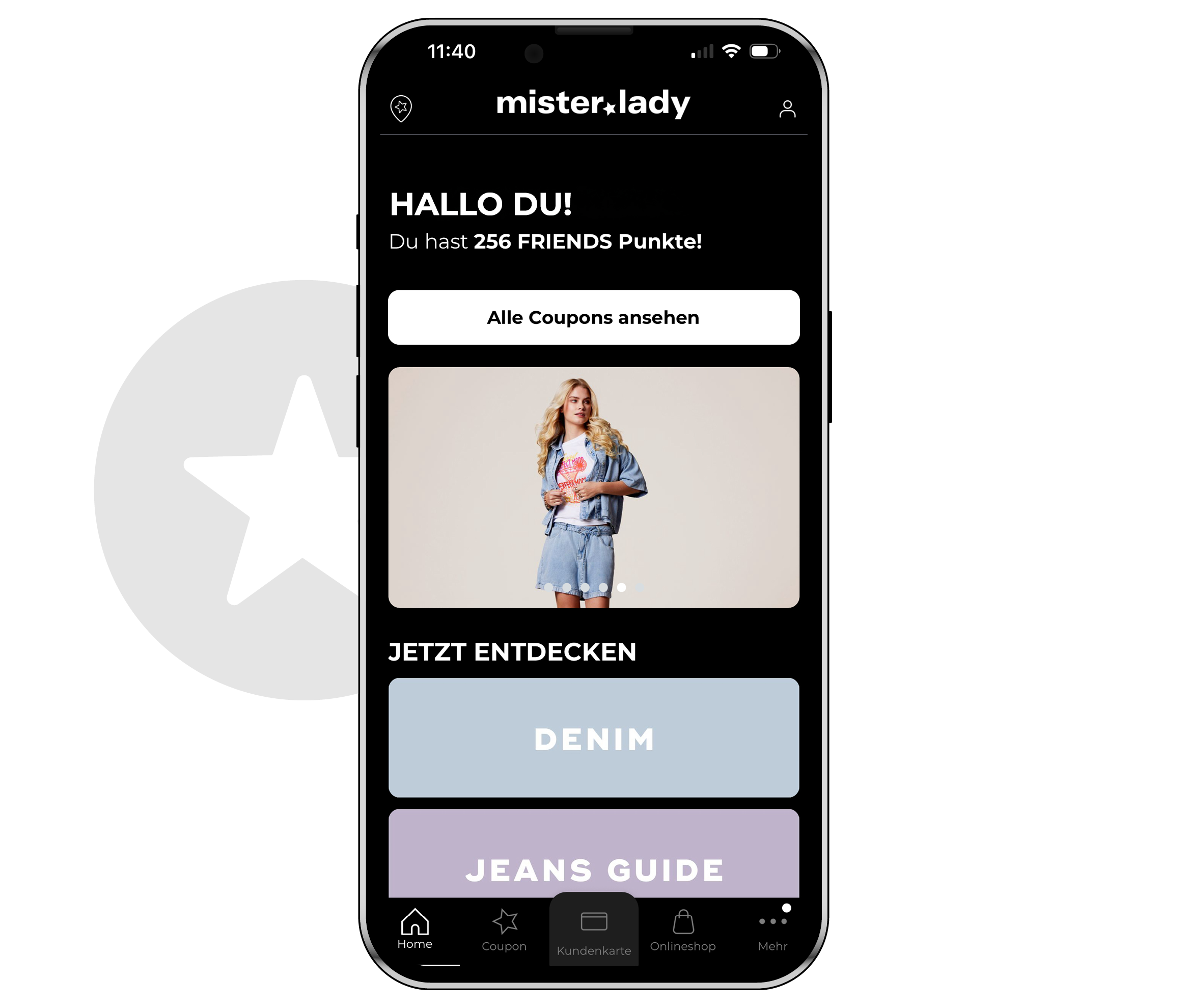Überzeuge dich selbst von den vielen Vorteilen und erlebe Fashion neu – jederzeit und überall. Lade dir jetzt die mister*lady-App herunter und verpasse keine Trends, Aktionen oder exklusiven Deals mehr. Dein Style, deine Vorteile: Bald die mister*lady-App downloaden.