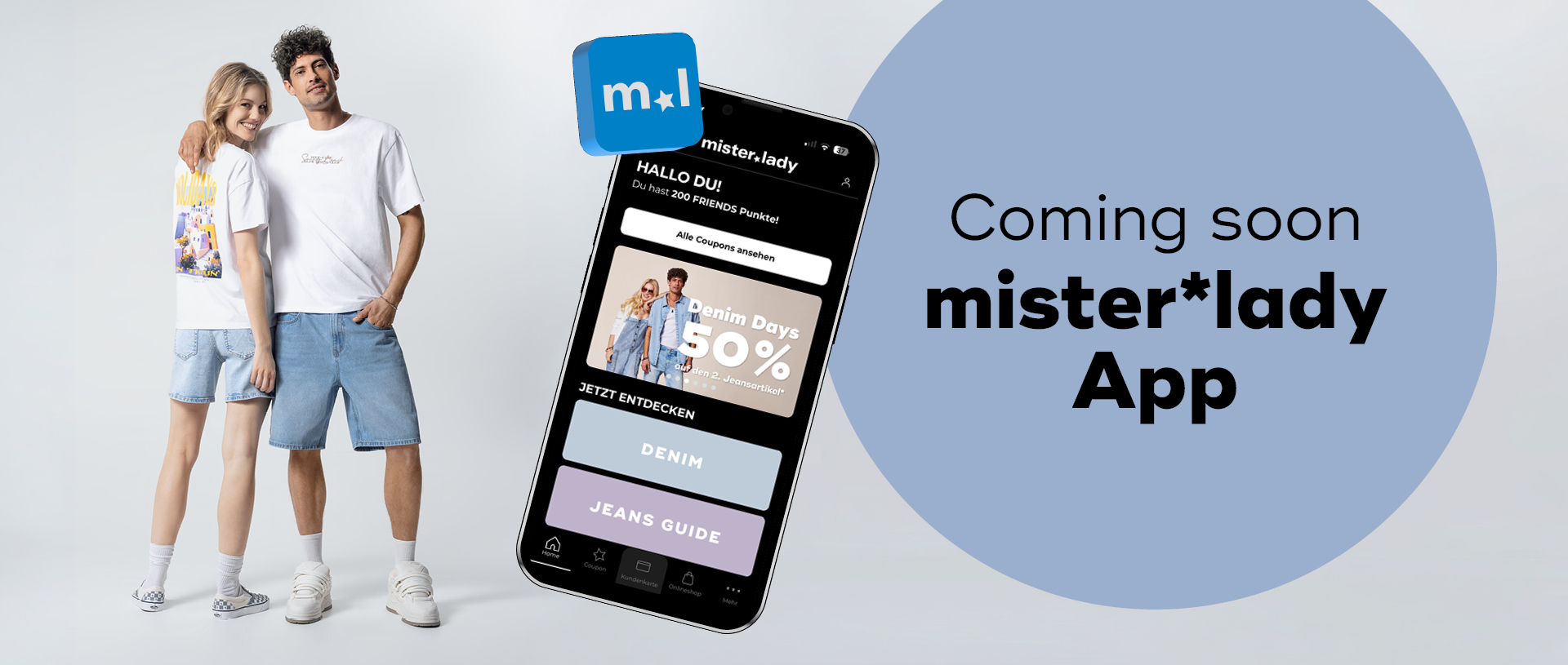 Mit der neuen mister*lady-App wird dein Shopping-Erlebnis noch einfacher, persönlicher und inspirierender. Entdecke aktuelle Trends, sichere dir exklusive Vorteile und habe deine Lieblingsstyles immer griffbereit – ganz bequem auf deinem Smartphone. Die App verbindet Fashion-Inspiration mit praktischen Funktionen und macht deinen Alltag ein Stück stylisher.