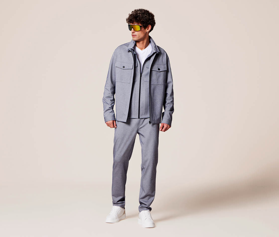 Auch bei professionellen Looks für Herren zeigt sich der Business-Casual-Style in neuem Licht. Der klassische Anzug wird neu interpretiert und setzt auf einen klaren Schnitt mit modernen Passformen. Statt klassischer Kombination aus Sakko und Stoffhose entsteht ein Look, der durch robuste Jacken und weite, modern geschnittene Ginos oder Jeans leicht futuristisch wirkt. So entwickelt sich ein Business-Casual-Outfit, das Professionalität ausstrahlt und gleichzeitig offen für neue Stilansätze ist – souverän, progressiv und absolut zeitgemäß.